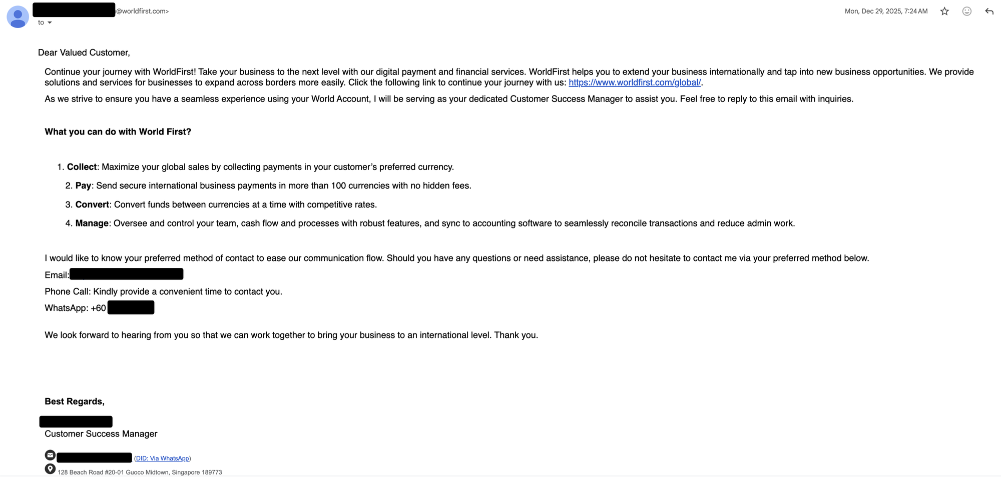 In our early years, we also used WorldFirst. The poor British platform was acquired by Alibaba, and we have been gradually ditching it ever since. The entire vibe of the platform became cheap and frivolous once Alibaba took over; it became more like a discount shopping platform (yep, we know what you really are, Alibaba) than a proper financial service. We also had to endure cold emails from various WorldFirst staff members.