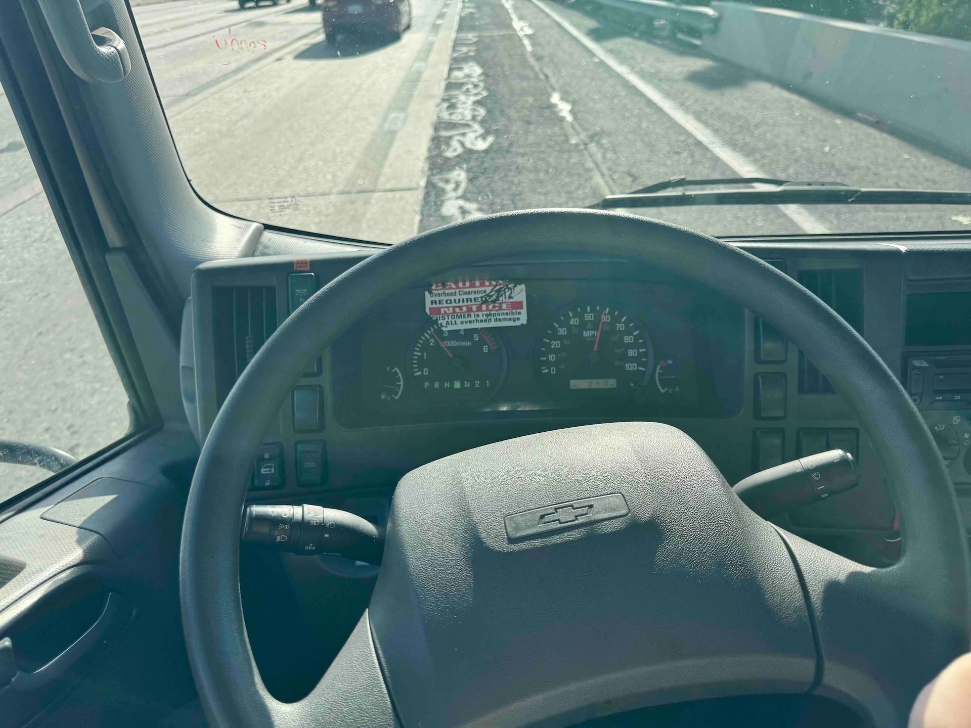 Once we hit the highway, the might of the V8 began to reveal itself. Instead of having to push the pedal to the floor like in a diesel Isuzu, this truck accelerated faster than a family sedan. We never got a chance to test it with a heavy load (our two pallets were only about 600 lbs total), so we can't speak to how well it performs under pressure.